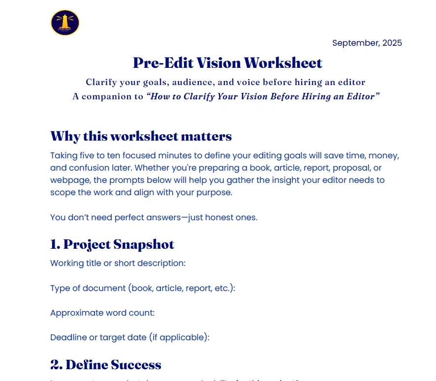This self-check for the editing your project needs is handy before you start to shop for services.