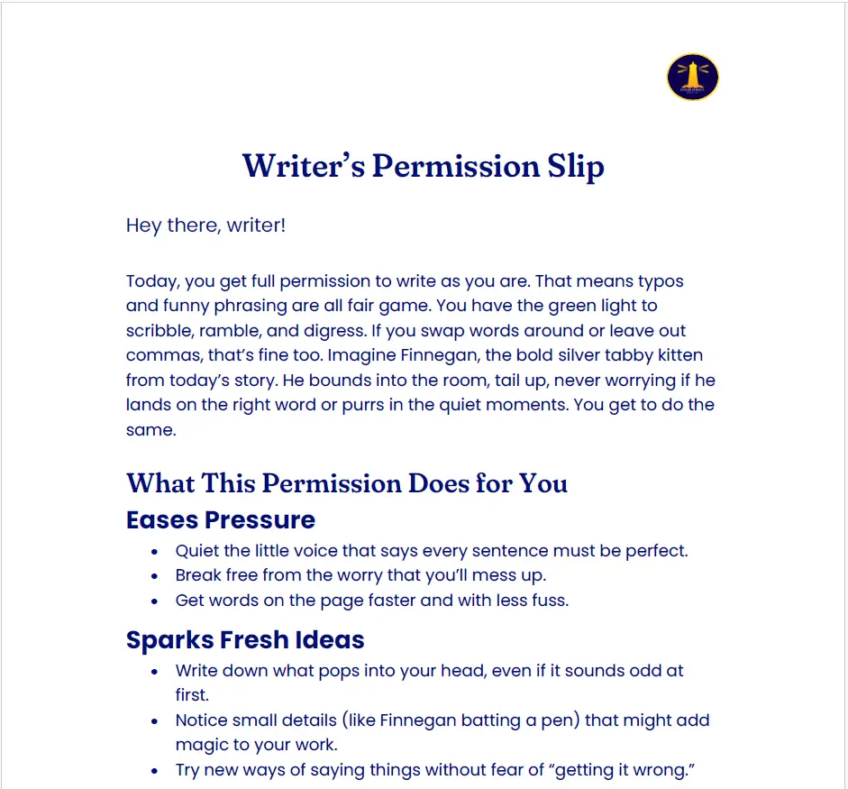 This permission slip goes with my first blog, about getting started writing despite making mistakes.
