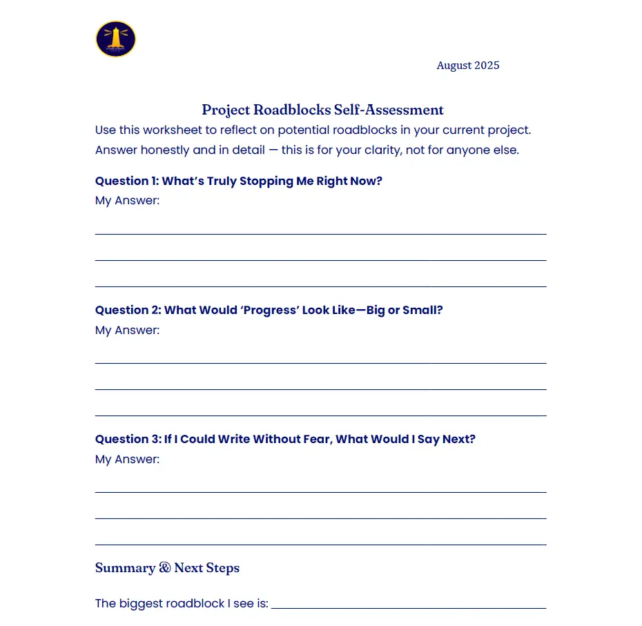 The blog on Writing Coaching talks about writer’s block and getting unstuck. The PDF worksheet is your downloadable to help.