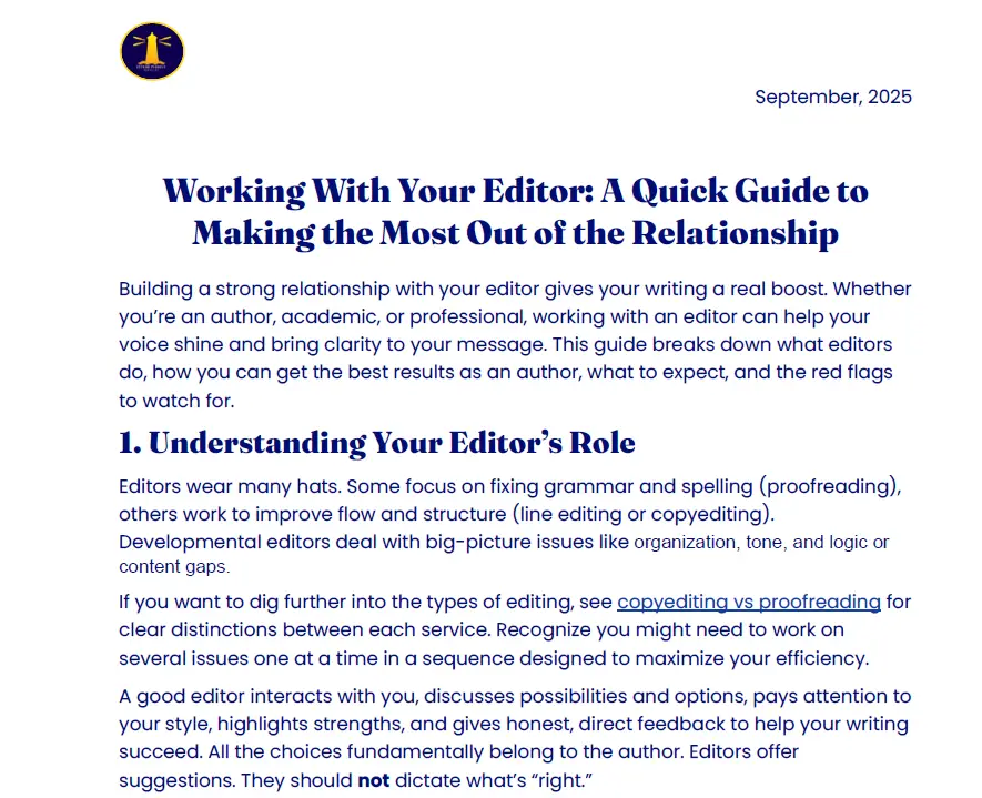 Work better with your editor by building a true author–editor partnership. This quick guide shows how to set goals, choose tools, and keep feedback flowing so every pass gets easier and your pages get stronger.