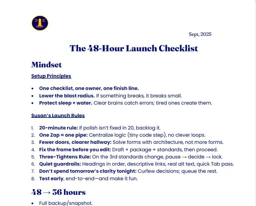 Some checklists are just noise. This one isn’t. Built from live launches and real-life ops. Use it to finish without meltdown.